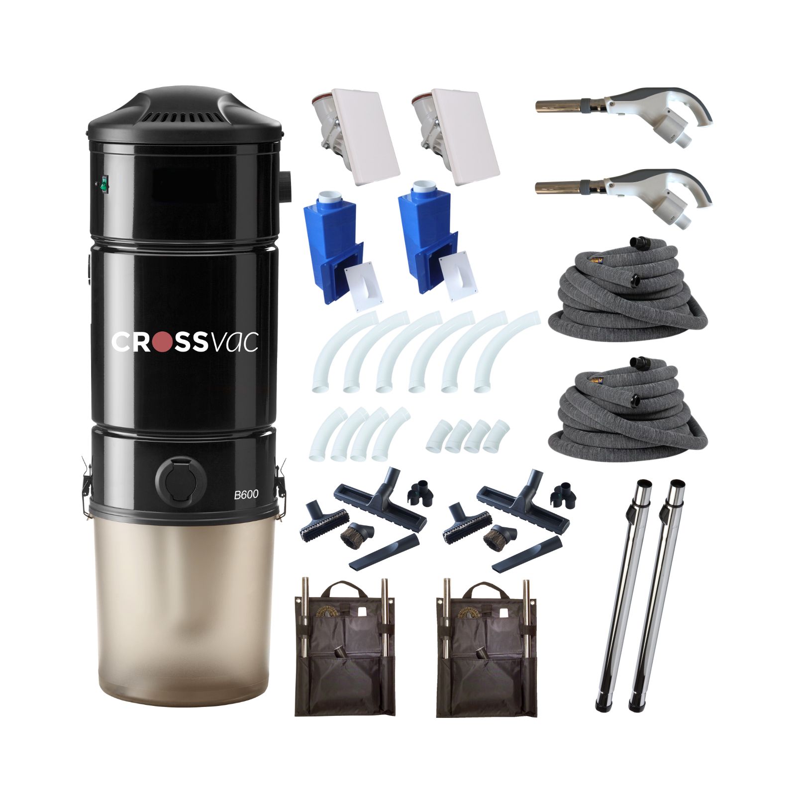 Kit d'aspiration centralisée B600 Hide-a-Hose avec installation d'aspiration B600 et 2x Hide-a-Hose rétractables ainsi que le matériel d'installation nécessaire, les accessoires d'aspiration & Co.